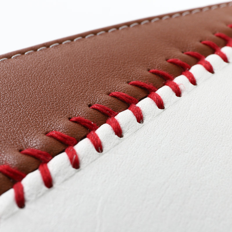 赤い縫目は野球ボール製造の職人が、野球ボールと同じ工程で手作業にて施している本格的なアイテムです。