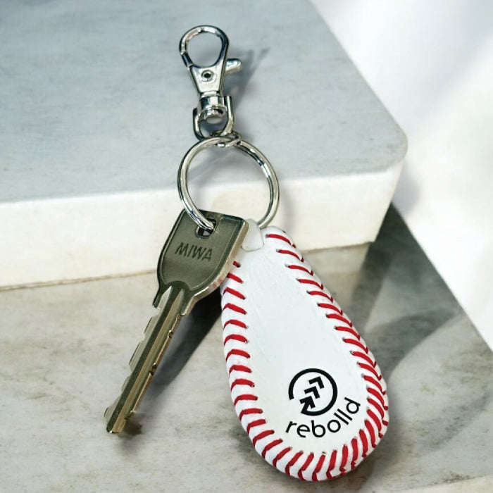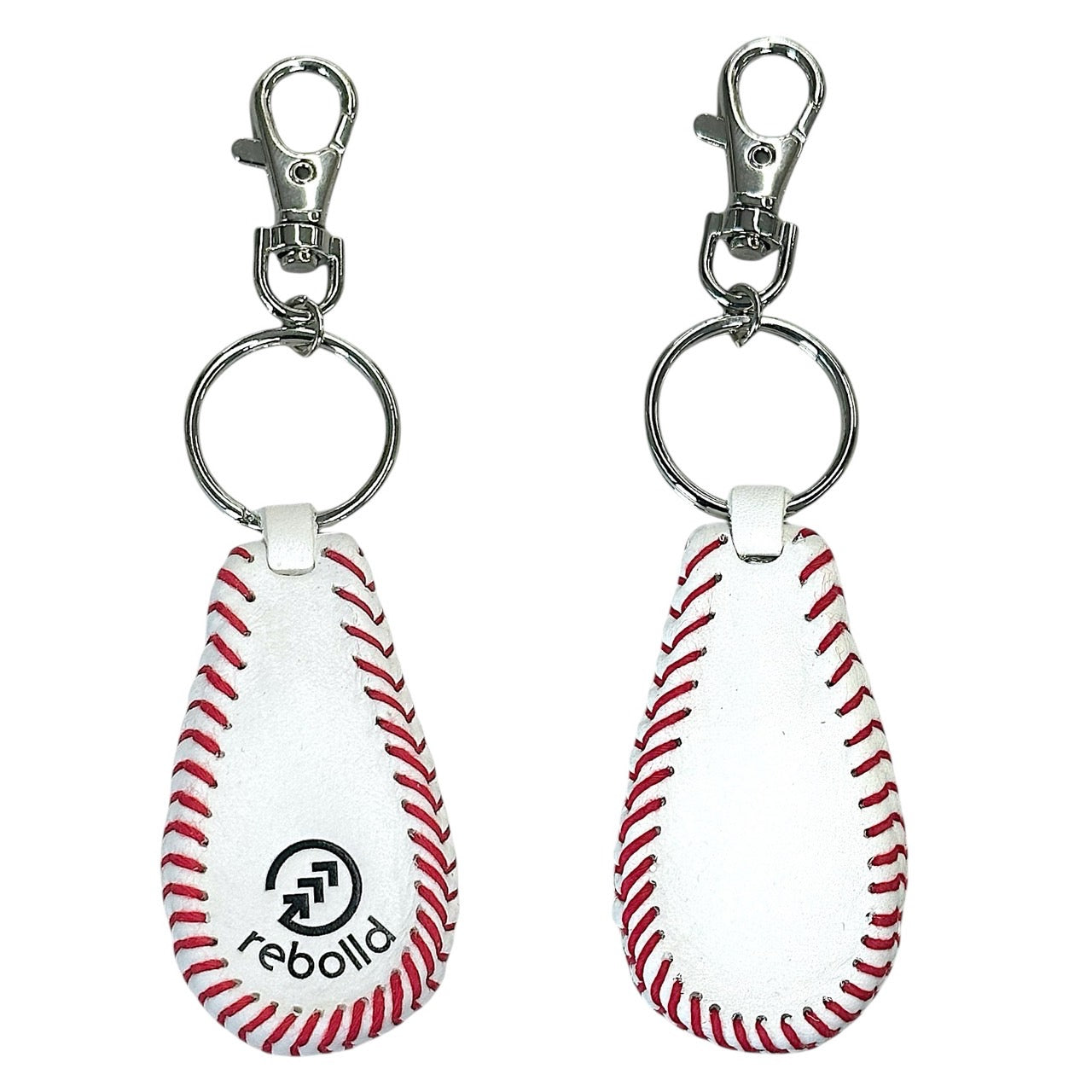 Rebolldの本革キーホルダーは、公式戦試合球と同じ高品質な牛革を使用し、野球ボール製造の熟練職人が一つひとつ手作業で縫い上げた逸品です。